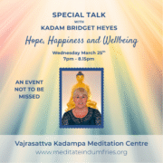 Kadam Bridget Heyes is the NKT-IKBU National Spiritual Director for the UK. She is known for her powerful teachings, compassionate heart, and deep understanding of Buddha’s wisdom advice. Her teachings are exceptionally clear and she presents profound ideas in a way that are easy to practice and integrate into daily life. As a mother of two, she has a special insight into how to bring Buddhism alive to meet the demands of a busy modern life. Kadam Bridget shows an inspiring example for everyone on the spiritual path.